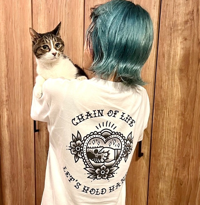 ●カラー white.black ●サイズ M.L.XL(ユニセックス) ●綿100% 生地 ●model/148㎝ M着用 ●design tattoo artist/nattsu 猫と人が手を取り合ってるデザイン。 前には文字ロゴが入ってます。 ─────────────────── 売り上げは主に保護猫、外猫たち、活動費に使わせて頂きます。 ※ご購入前にご確認ください※ 本商品は、猫ちゃんのいる環境にて保管および梱包を行っております。発送前には、コロコロ等を使用して猫の毛が付着していないか十分に確認しておりますが、稀に毛が混入してしまう場合がございます。 猫の毛に敏感な方や、アレルギーをお持ちの方につきましては、誠に恐れ入りますがご購入をお控えいただきますようお願い申し上げます。 ご理解とご協力のほど、何卒よろしくお願いいたします。